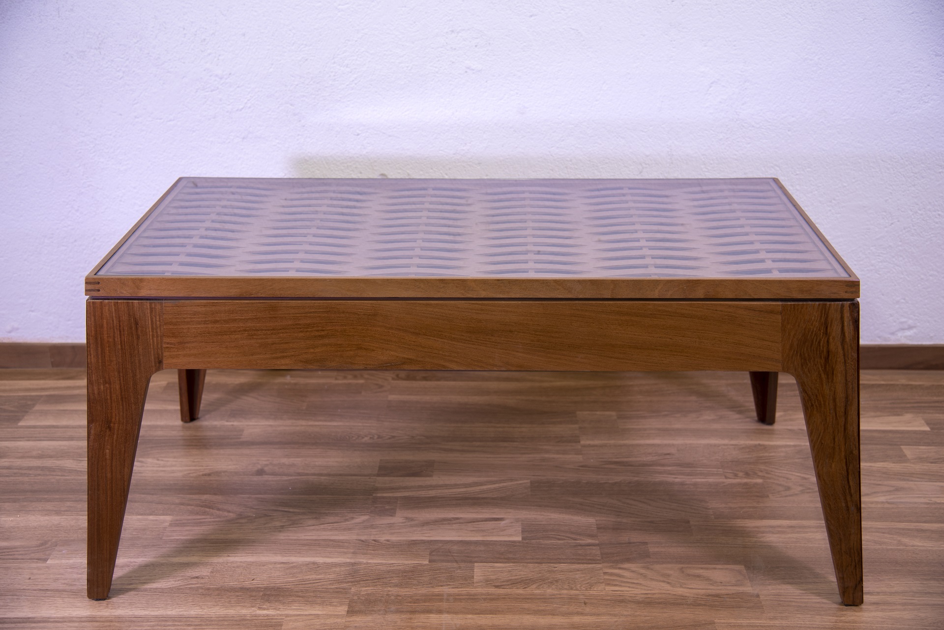 Mesa de centro elevable con almacenamiento interior. Realizada en madera de ipé reciclada .